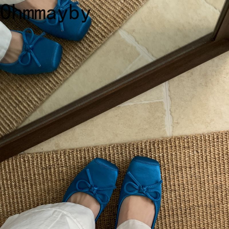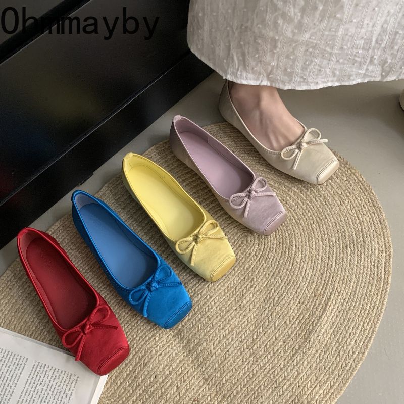 2026 Spring Square Toe Women Ballet Flats Concise Shallow Slip On Ladies Shoes Soft Sole Butterfly-knot Eelgant Dress Shoes