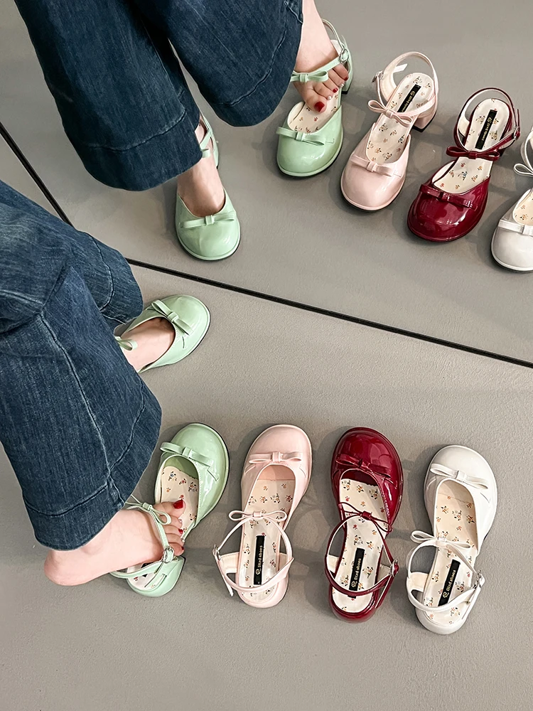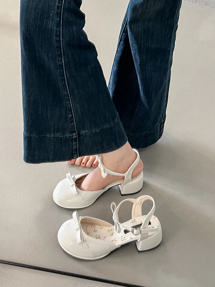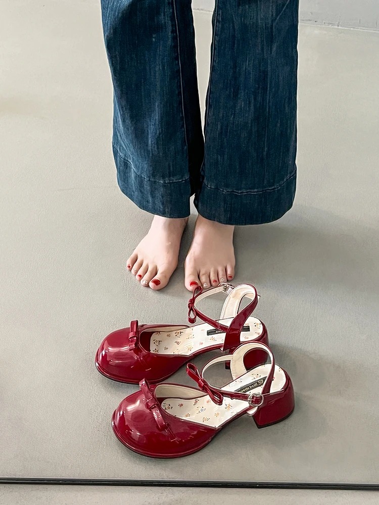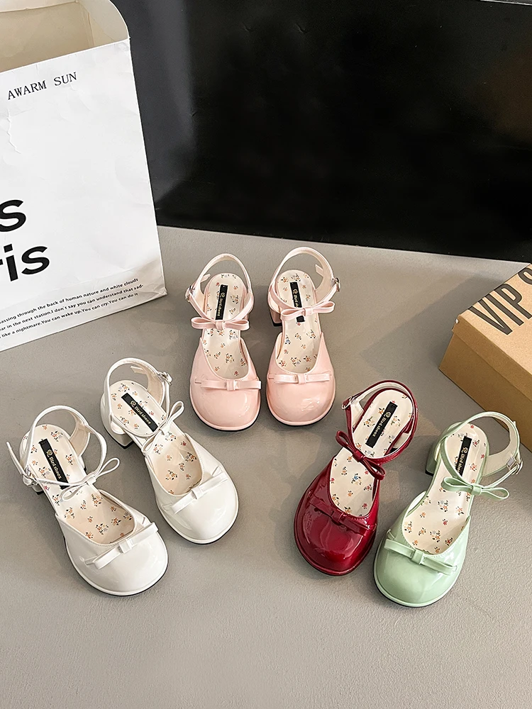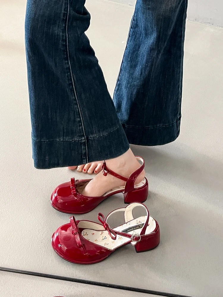 2026 Summer Closed Toe Sandals Sale Of Women's Shoes Block Heels Buckle Strap New Chunky Bow Girls Retro Scandals Bow Shoes Buc