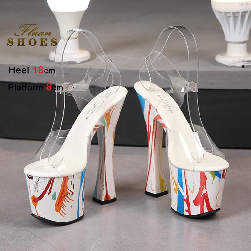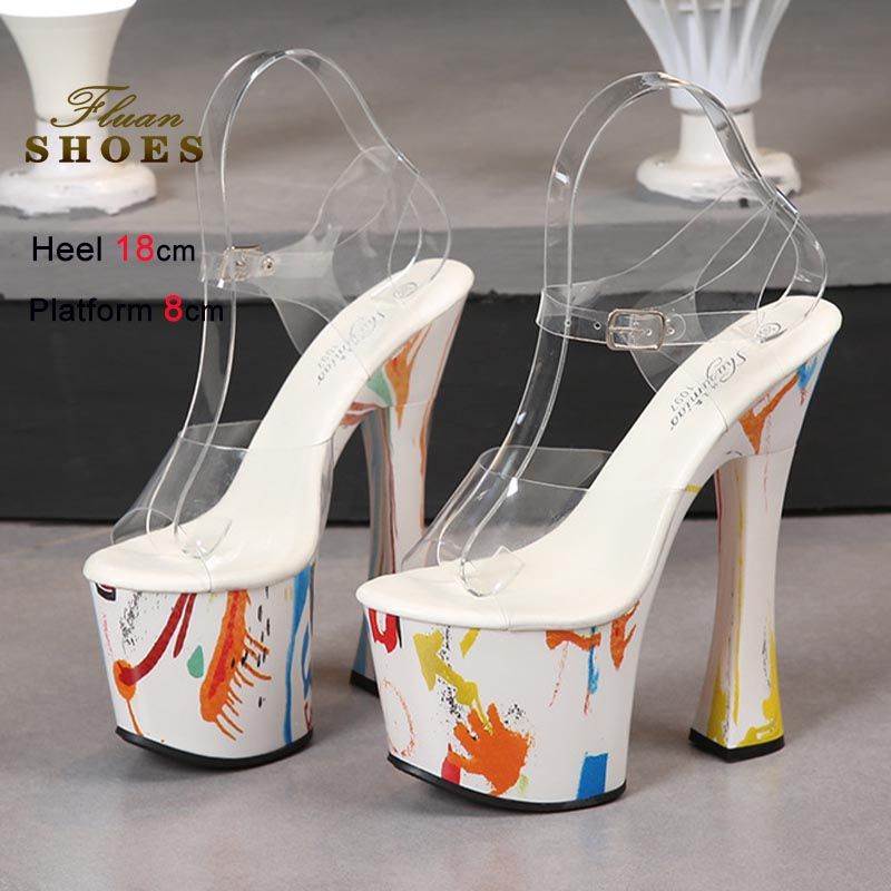 2026 Summer New Sexy Women Sandals Fashion 18cm Super High Heels Clear PVC Sandals Ladies Pumps Stiletto Party Model Show Shoes