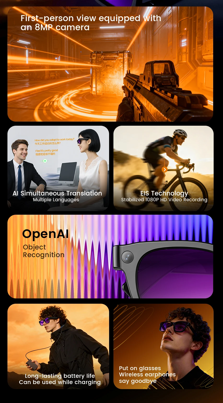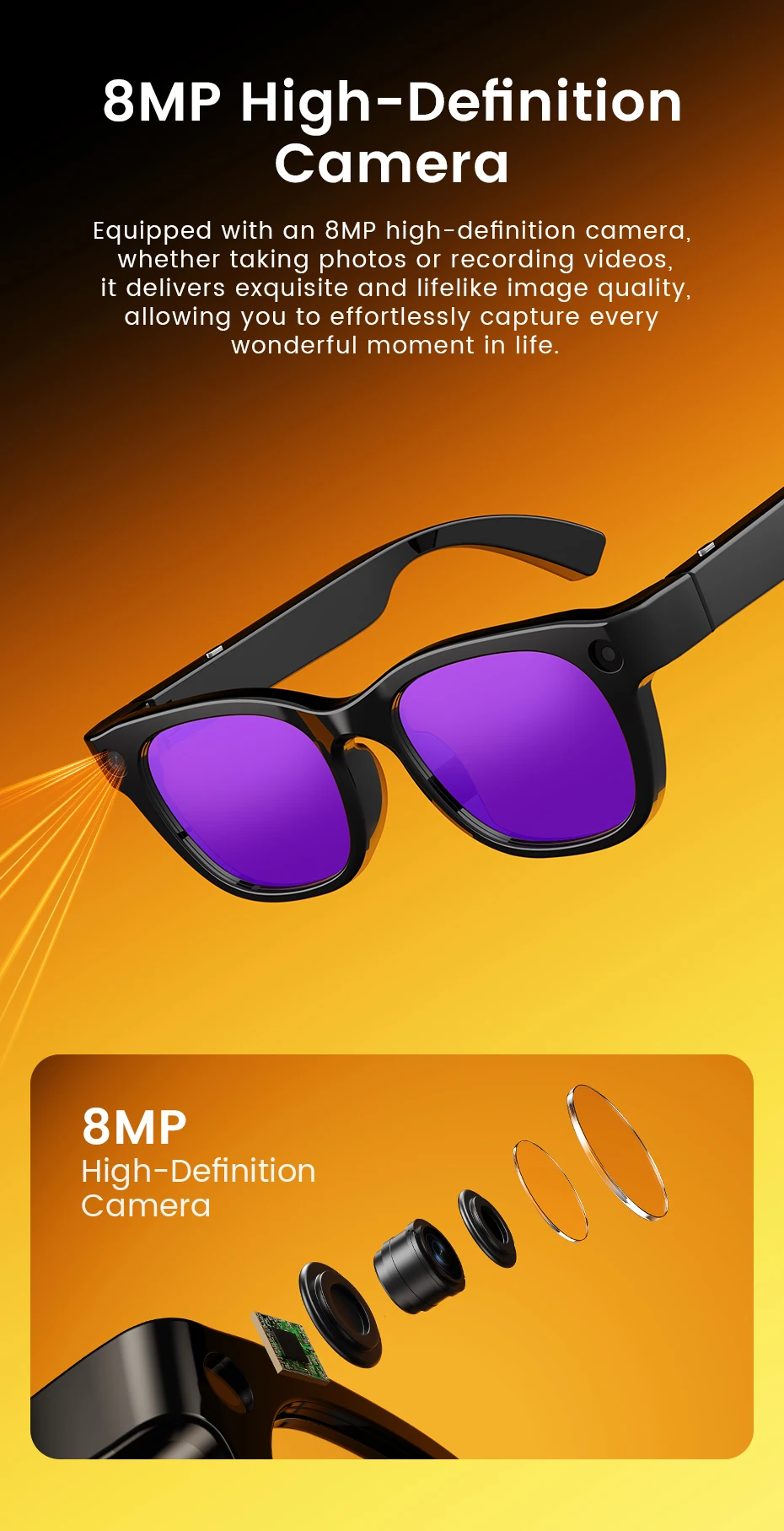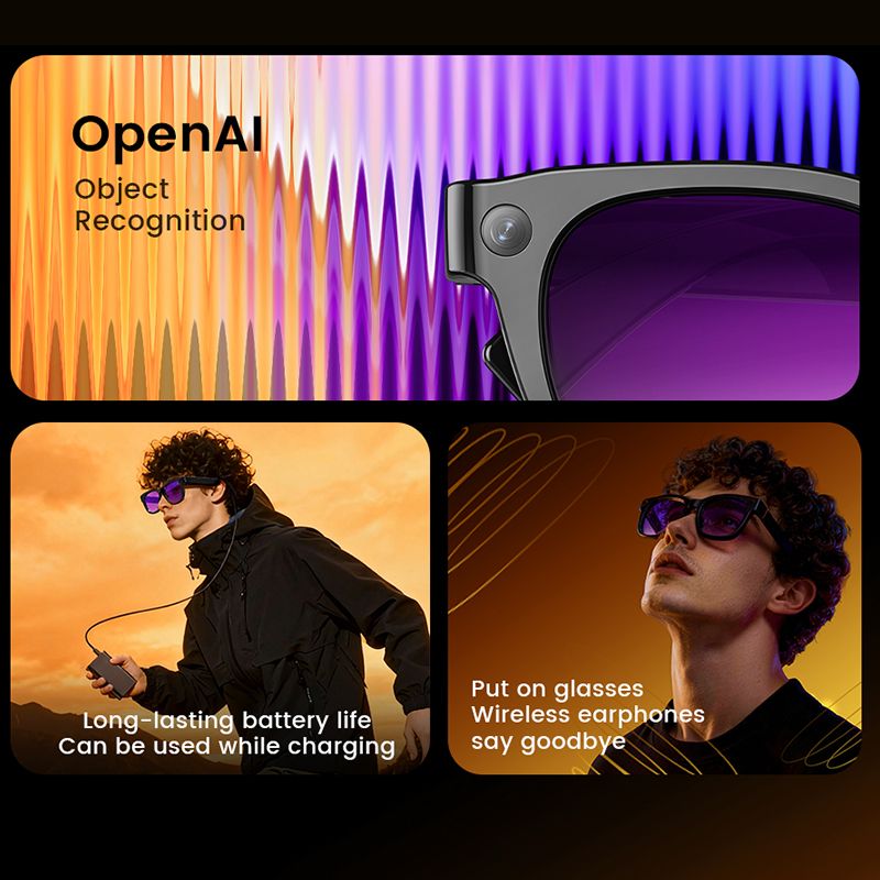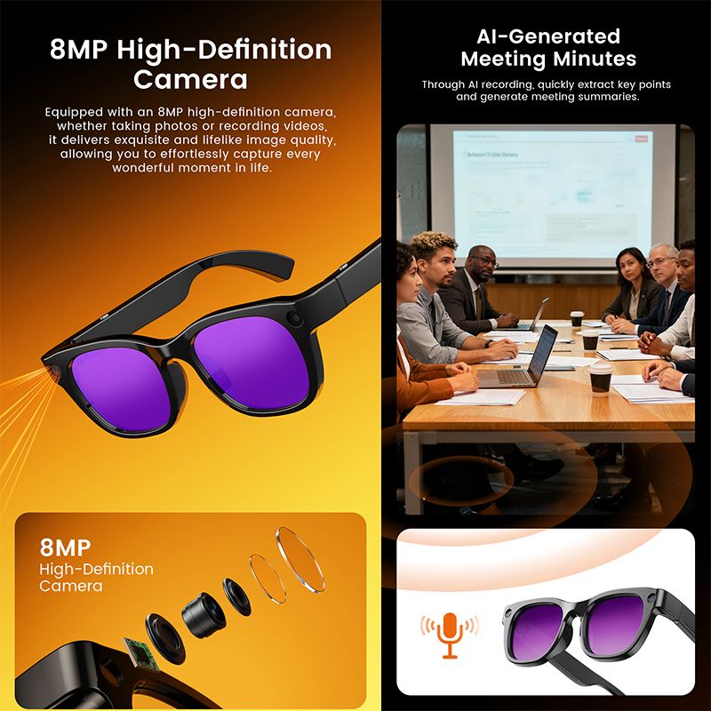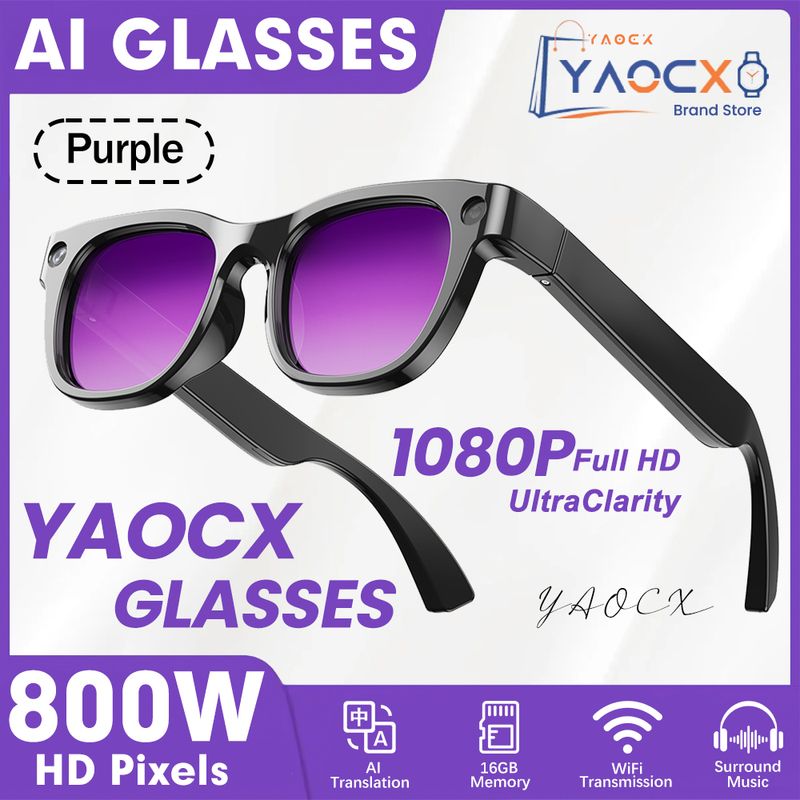 2026 Ultra AI Smart Glasses 800W Camera ChatGPT Voice Assistant 16GB Storage Real-time Translation Bluetooth Music Sunglasses