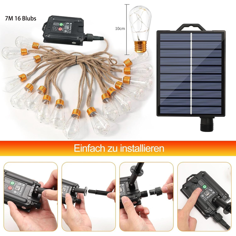 Solar Powered Outdoor String With Timer 7m 16 Shatterproof Bulbs Waterproof Led Sun Lamp for Hanging Patio Garden Patio Path