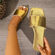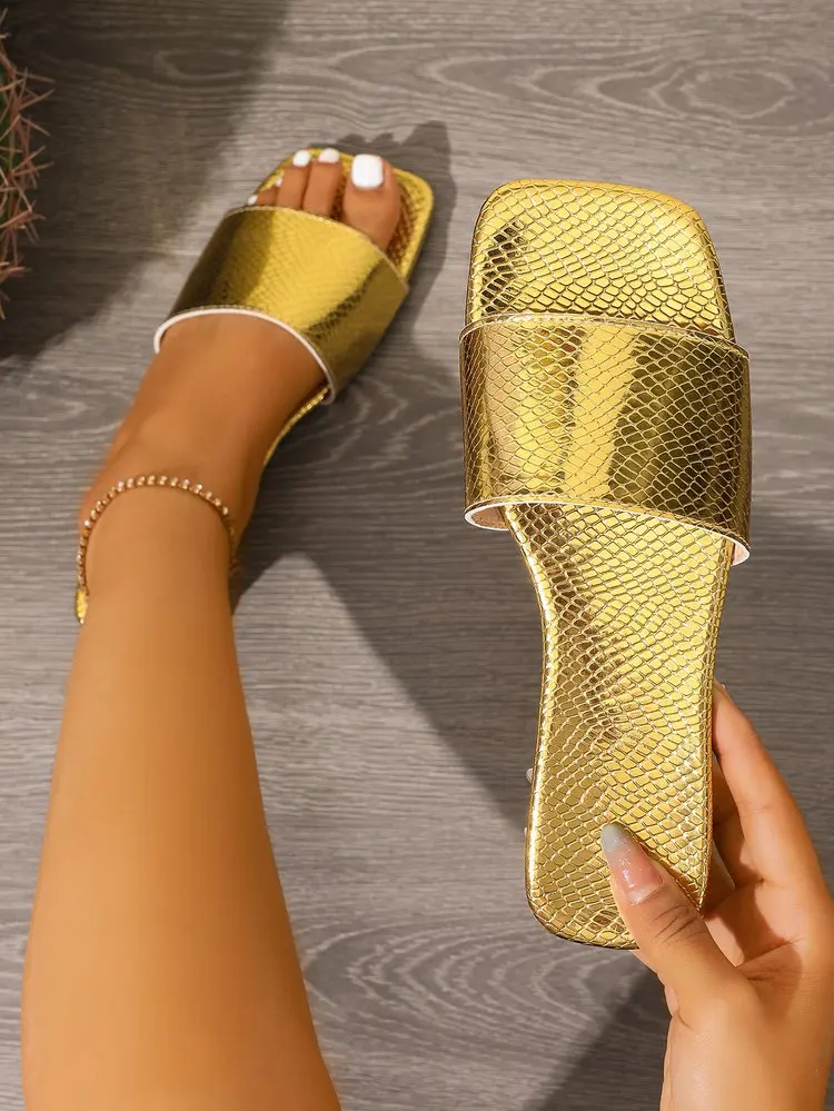 2026 Women's Fashion Gold Snakeskin Print Slides Square Toe Open Toe Sandals for Party Wedding Daily Wear