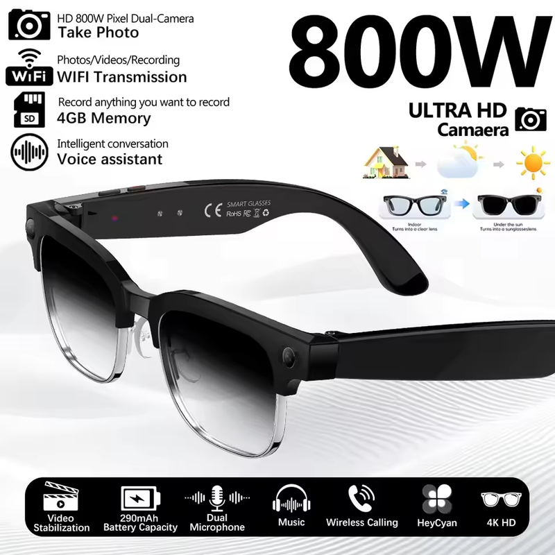 2026 World Premiere 4K HD Camera AI Smart Glasses 800W Pixel Camera 1080P Video AI Photo Recognition Call Travel abroad Glasses