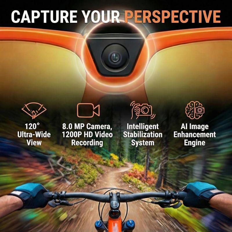 2026New AI Smart Glasses ChatGPT 1080P Camera 8MP Anti-shake Cycling Video&Photo Sport Sunglasses DualMic 32GB Windproof Goggles
