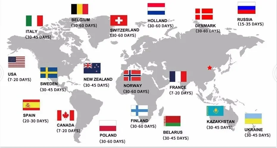 Please note that delivery times are estimates and may vary due to customs procedures, carrier delays, weather conditions, or other unforeseen circumstances.