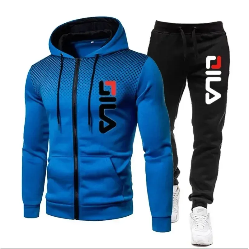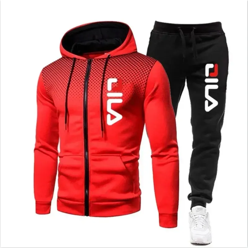 2026New autumn and winter men's long-sleeved pullover hoodie + pants 2-piece fashionable outdoor running men's sportswear set