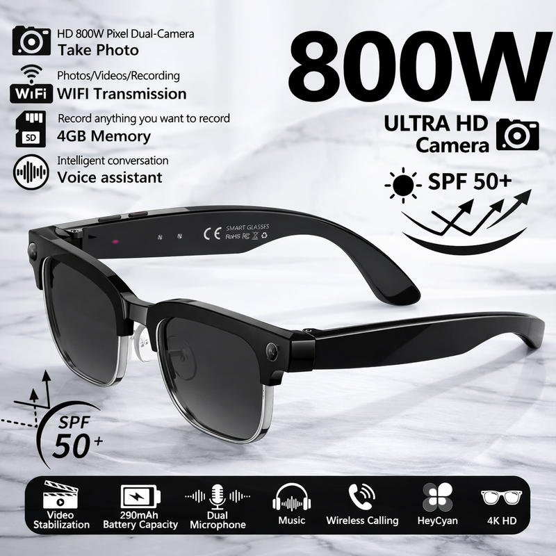 2026New Smart Glasses with 800W Pixel Camera AI Photo Recognition Call Voice Translation Video Recording Sunglasses Men & Women