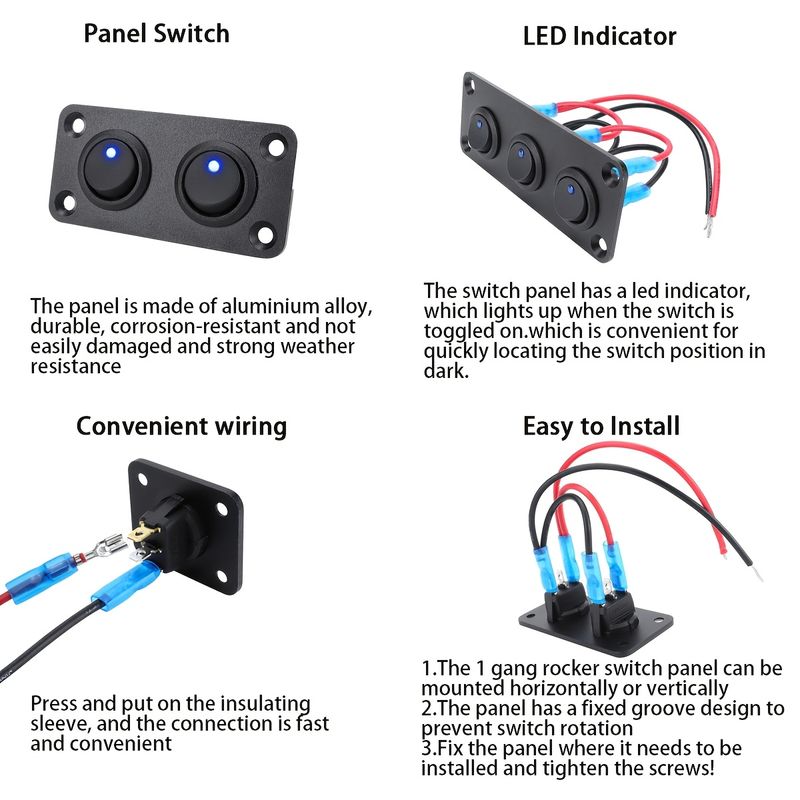 【Premium Aluminum Panel】:This 12v switch panel housing is made of high quality aluminum alloy material,more durable, Stronger and long service life.