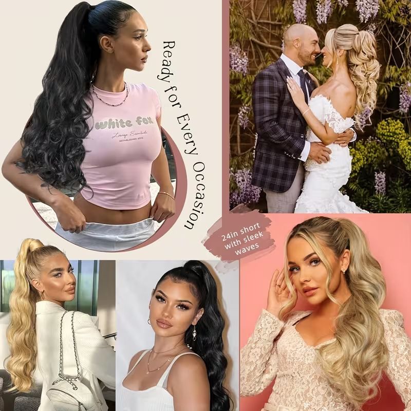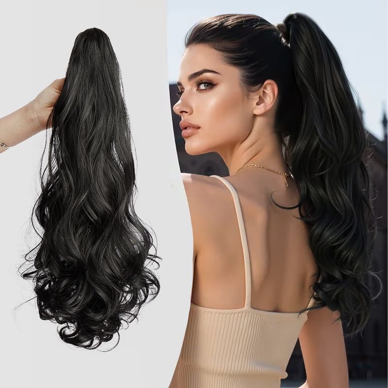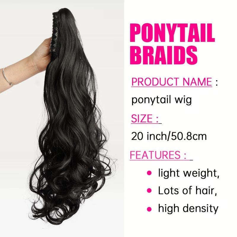 20Inch Synthetic Long Wavy Curly Ponytail Hair Extension Claw Clip in Elegant Volume Fulffy Hairpiece for Women