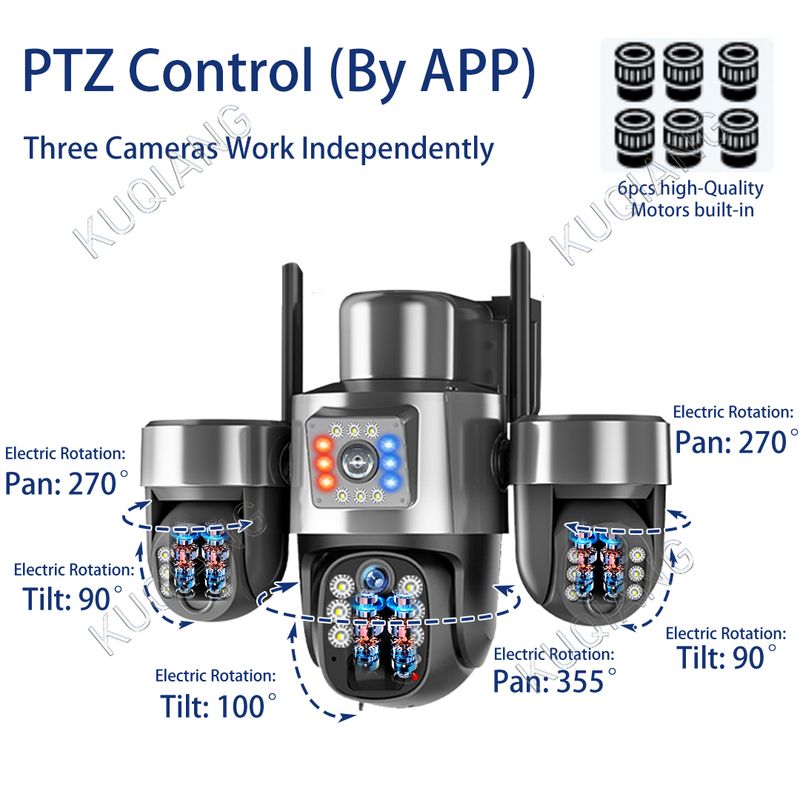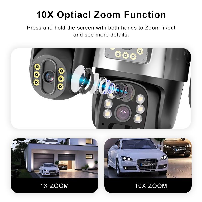 10. 4mm +4mm+4mm lens,10X digital zoom,built-in infrared light + white light, IR distance 20 meters