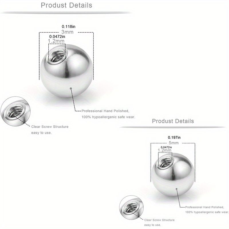 20pcs 14G16G Replacement Balls Piercing Balls Externally Threaded Industrial Tongue Belly Nose Lip Ear Piercing Barbell Parts