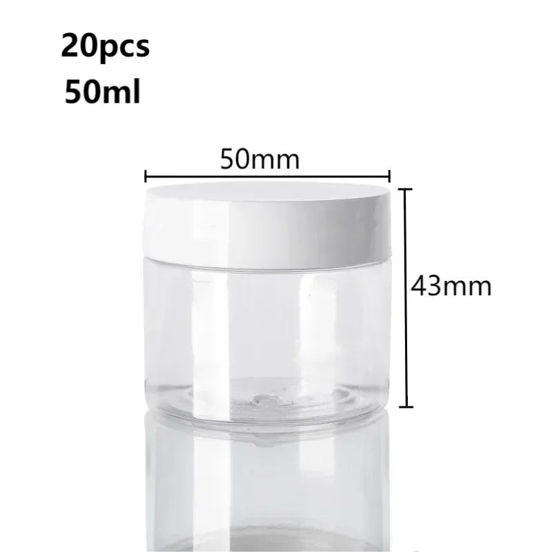 20pcs 30/50/60/80/100/150ml Plastic Empty Jars With White Lids Canister Face Cream Container Food Travel Bottle Home Supplies