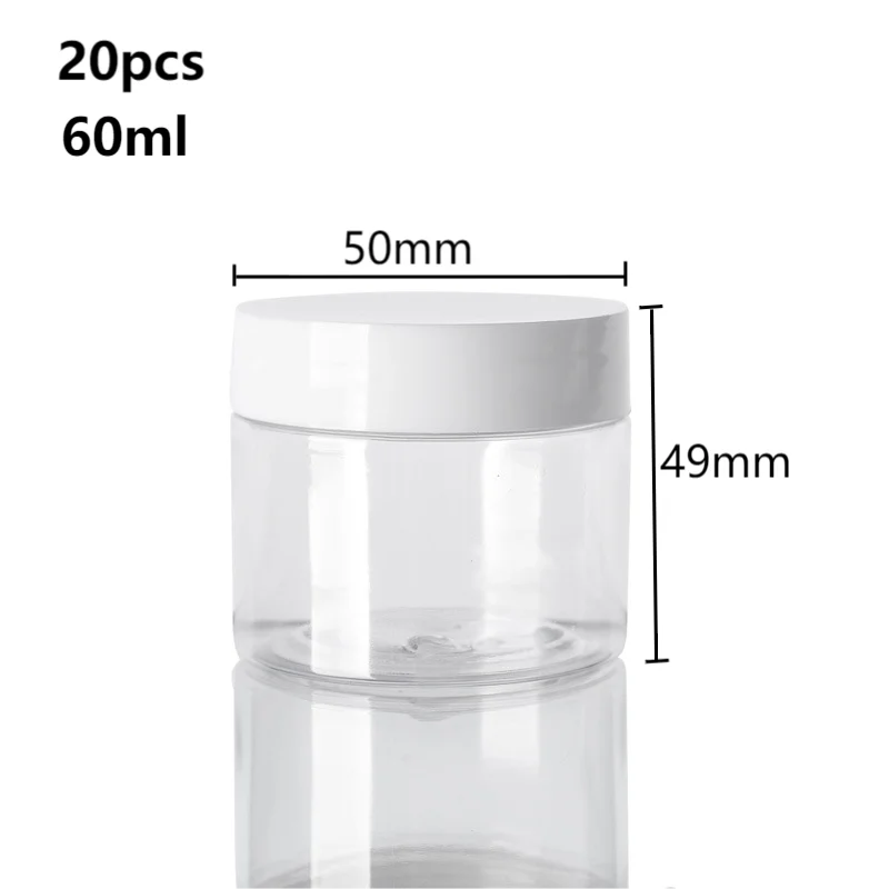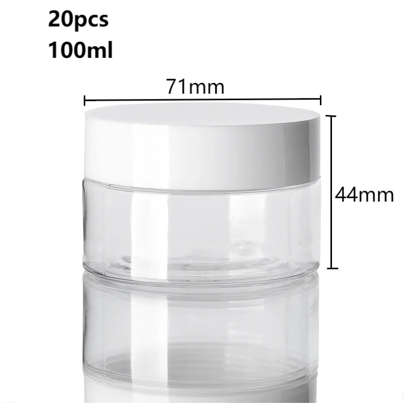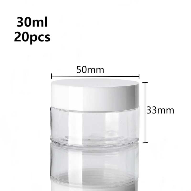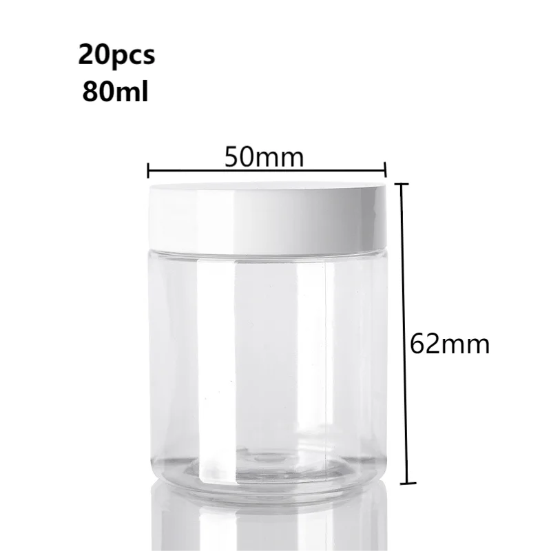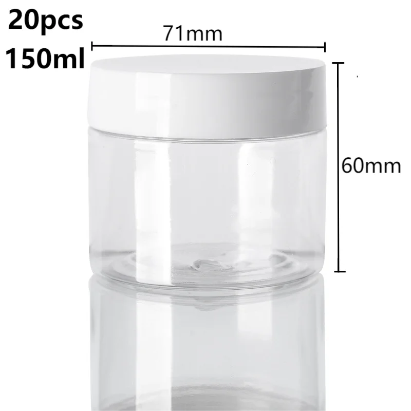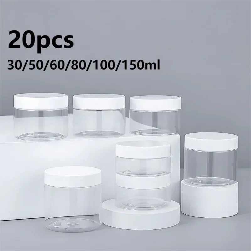 20pcs 30/50/60/80/100/150ml Plastic Empty Jars With White Lids Canister Face Cream Container Food Travel Bottle Home Supplies