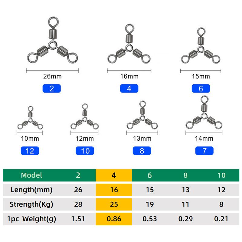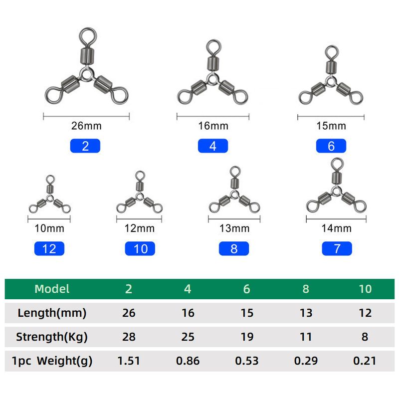 20pcs Brass alloy 3 Way Fishing Connector Ball Bearing Rolling Swivels O-Shape Three Way Rolling Swivels Fishing Tackle Fishhook