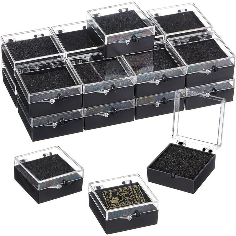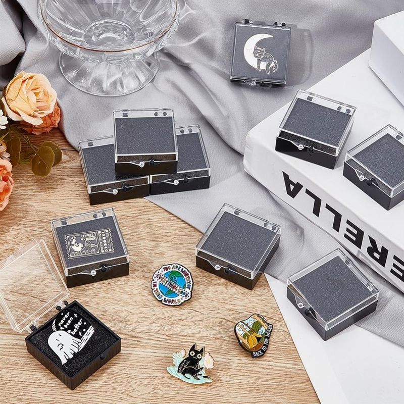 20Pcs Clear Plastic Gift Box For Pin 2x1.7x0.9 inch Black Presentation Boxes for Badge Clear Lapel Pin Presentation Display Case