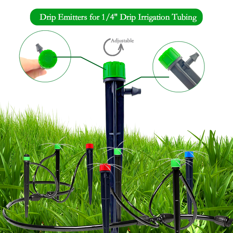 Drip system emitters can be attached to end of 1/4'' drip tubing. Put the end of tubing in hot water while installing, so that the tubing is not that stiff, and drip emitters will slides in easily.Drip tubing is not included!