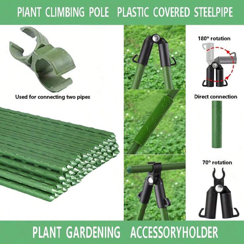 20pcs Garden Plastic-coated Metal Plant Climbing Pole Support Frame, Climbing Pole Connected To The Bracket fixing Clamp Accesso