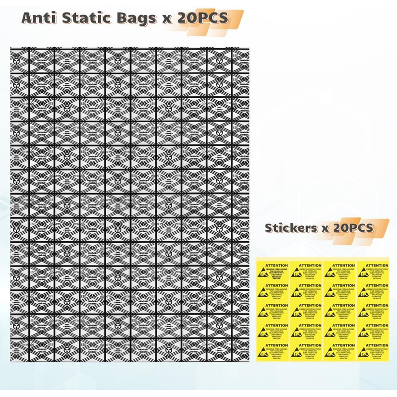 • Package includes 20 PCS reusable top open design anti static bags and 20 PCS Self adhesive ESD shielding anti static sign stickers to seal up the bags