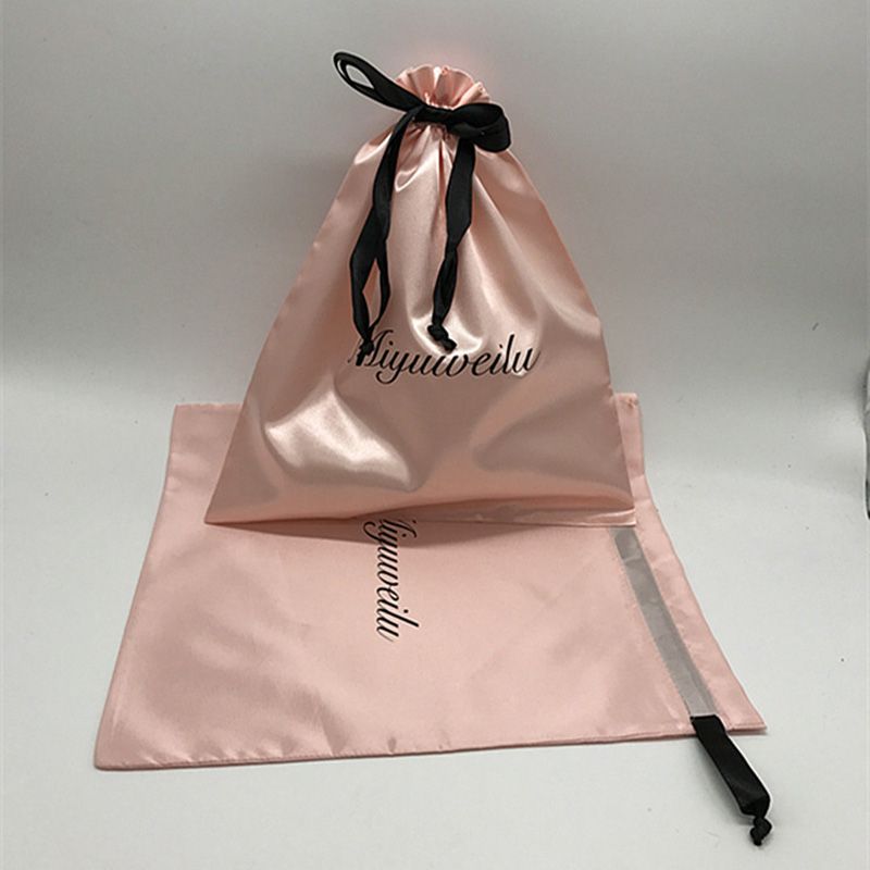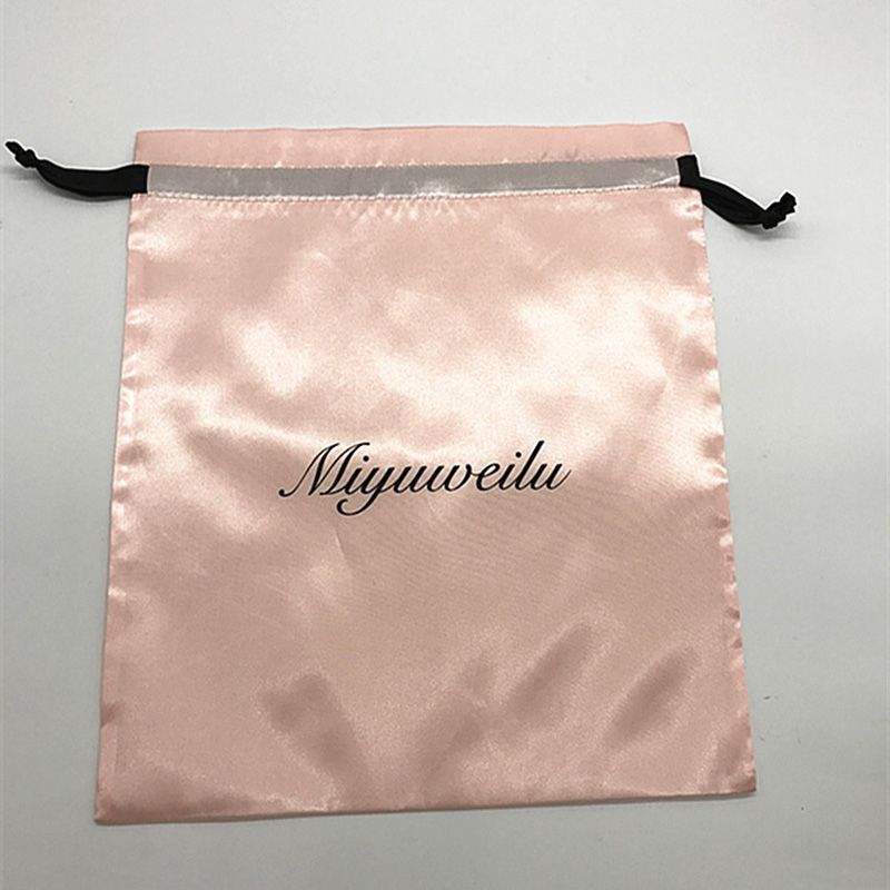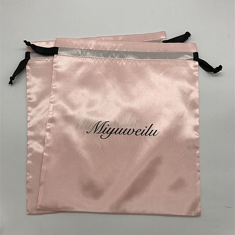 20PCS Luxury Satin Hair Pouch Packaging Jewelry Cosmetic Silk Drawstring Bag Party Wedding Gift Makeup Storage Sachet Print Logo