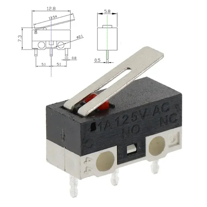 20Pcs Micro Limit Switch 3Pins Long Handle Roller Lever Arm SPDT Momentary Push Button Switch for Mouse DIY Accessories