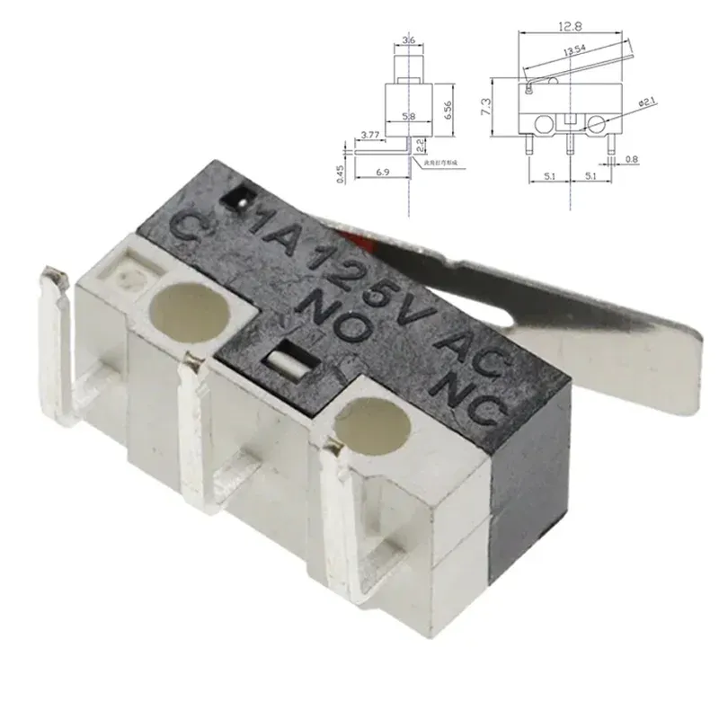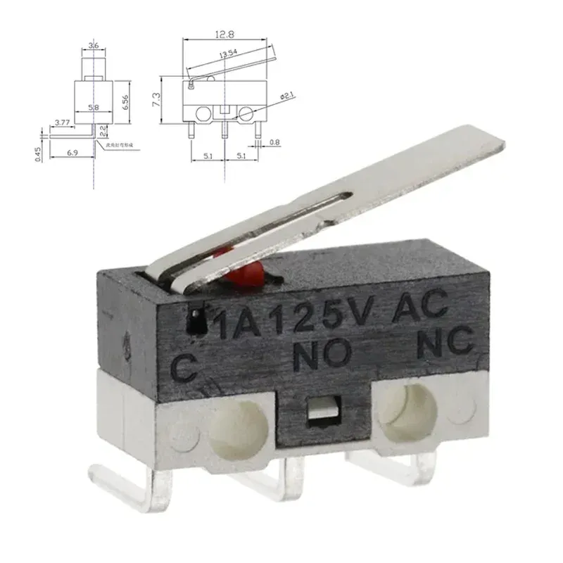 20Pcs Micro Limit Switch 3Pins Long Handle Roller Lever Arm SPDT Momentary Push Button Switch for Mouse DIY Accessories