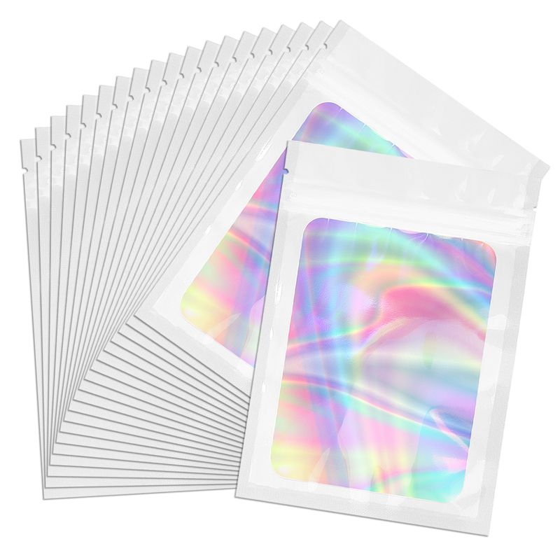 20pcs Zip Lock Bag Laser Plastic Jewelry Storage Bag DIY Earrings Necklace Bracelets Beads Gift Organizer Retail Packaging Pouch