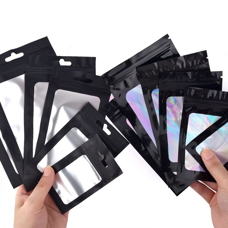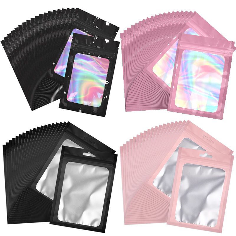 20pcs Zip Lock Bag Laser Plastic Jewelry Storage Bag DIY Earrings Necklace Bracelets Beads Gift Organizer Retail Packaging Pouch