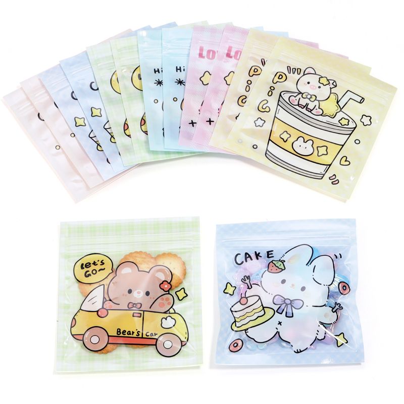 20pcs/lot 10X11cm Cute Ziplock Bag Multiolor Plastic Candy Snack Pouches Cartoon Pattern Reusable Jewelry Gifts Packaging Bags