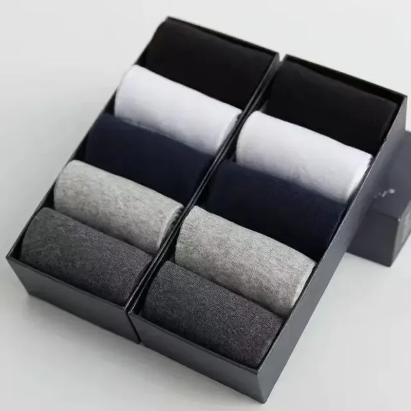 20PCS=10Pairs/Lot Men's Pure Cotton Socks Plus Size Solid Color Casual Office Business Long Socks Breathable Soft Men's Socks Plus Size EU39-48