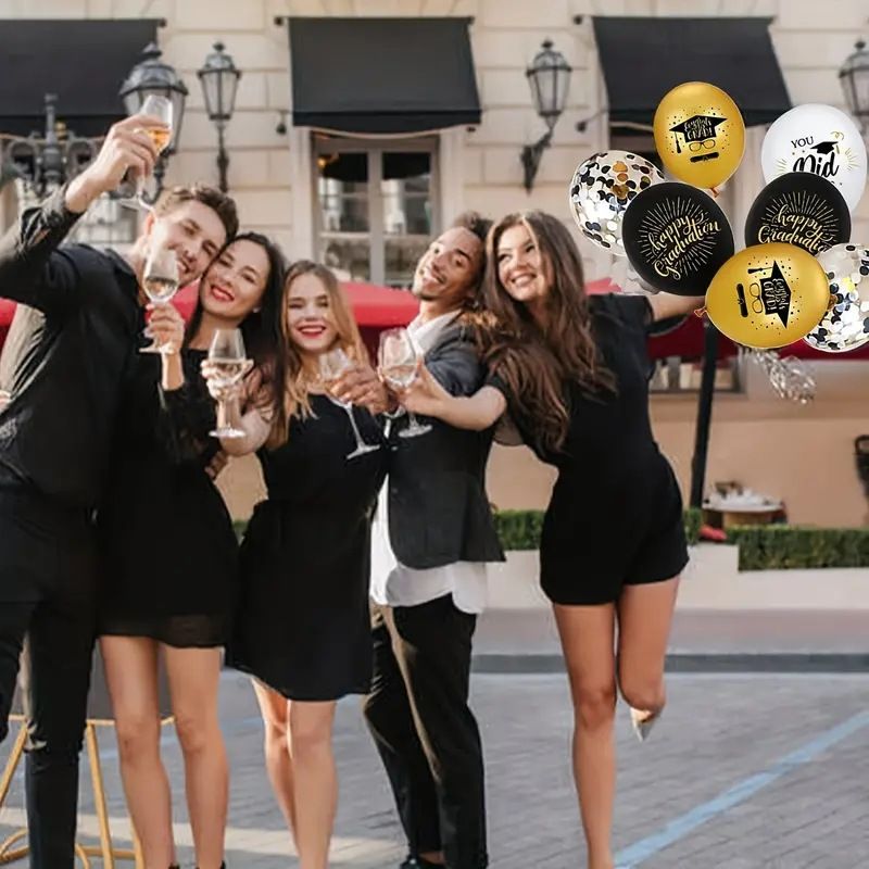 20Pcs/set Graduation Balloons Black Gold Confetti Latex Balloon 2026 Happy Graduation Party Decoration Bachelors Cap You Did it