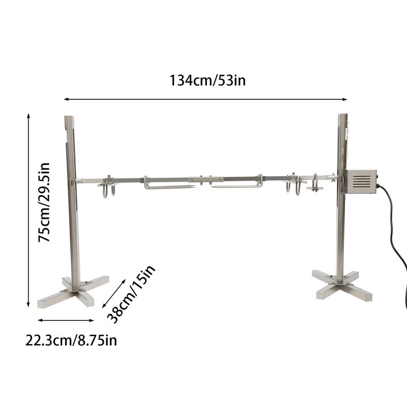 This electric barbecue rack is a convenient and practical barbecue equipment, which is suitable for outdoor barbecue activities. This product is made of high-quality stainless steel, with a finely welding process, and its surface is smooth, beautiful, and easy to clean. It is driven by an electric motor, making the barbecue more even and saving a lot of time and energy. Purchase this product to make your barbecue more delicious, convenient, and comfortable!