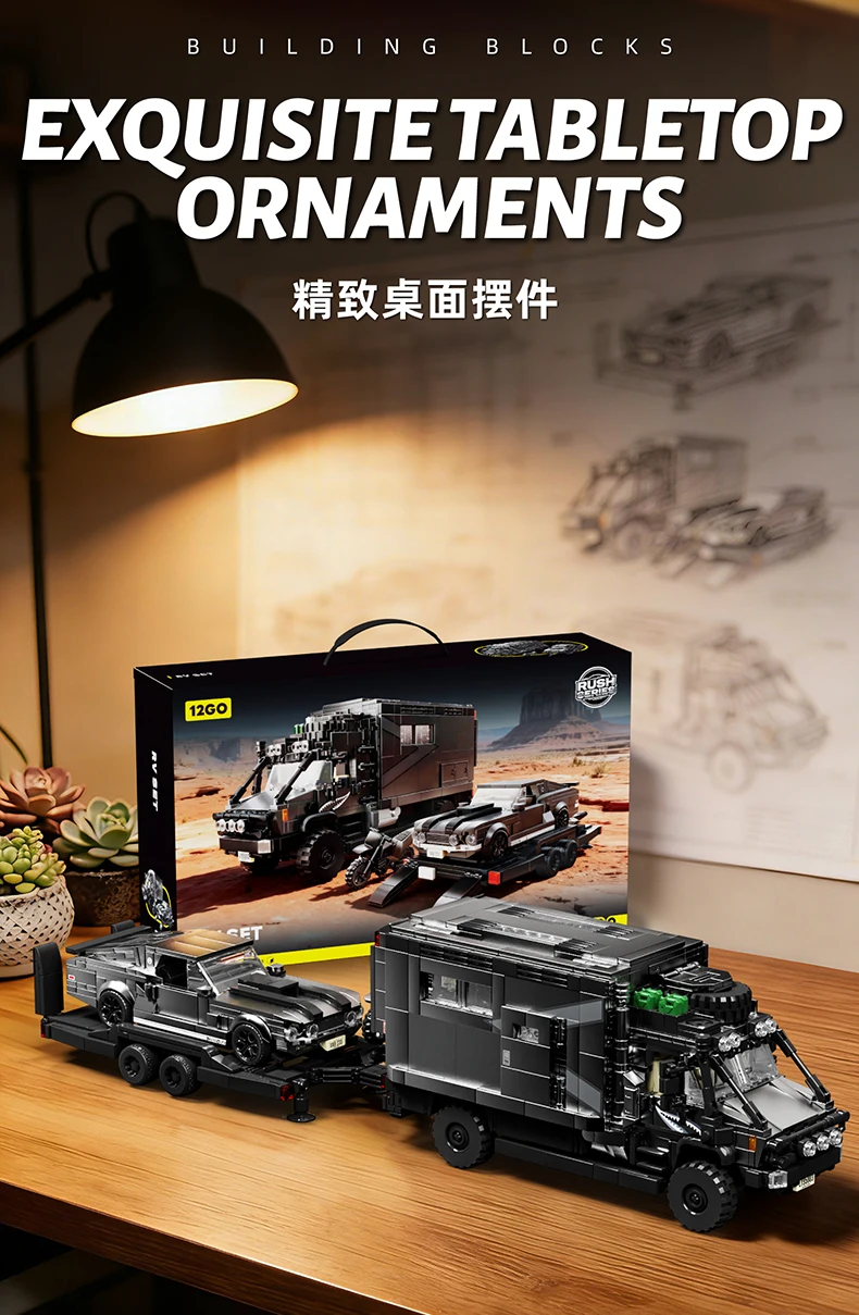 2135pcs U-Style Off-Road RV & Mustang Car Building Blocks Kit,All-Terrain Adventure Vehicle Model Trailer Set,Kid Diy Camper Toy