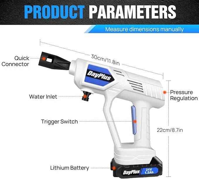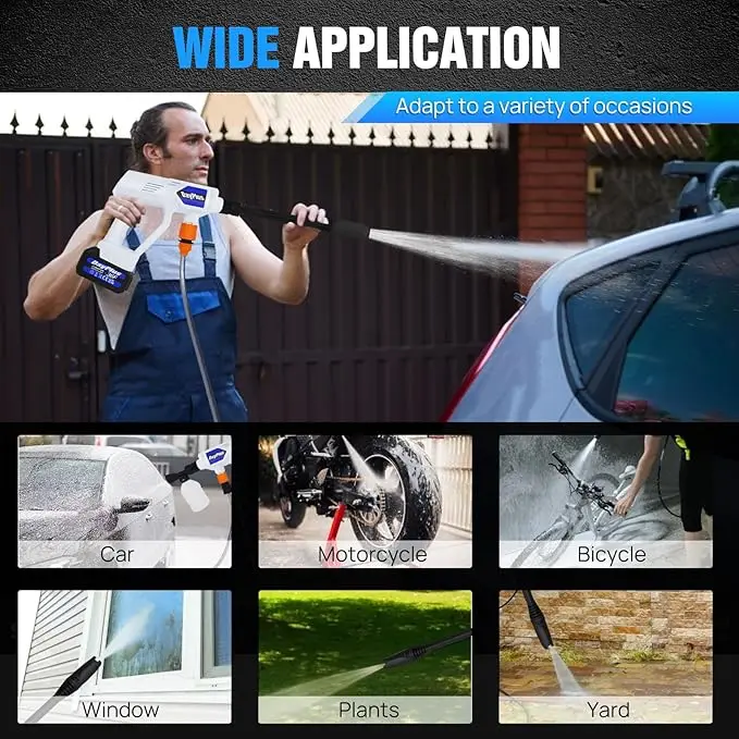 21V Cordless Pressure Washer Electric Car Washer,with Foam Filter Water Tank, High Pressure, Multifuction Nozzle Cleaner Jet Car
