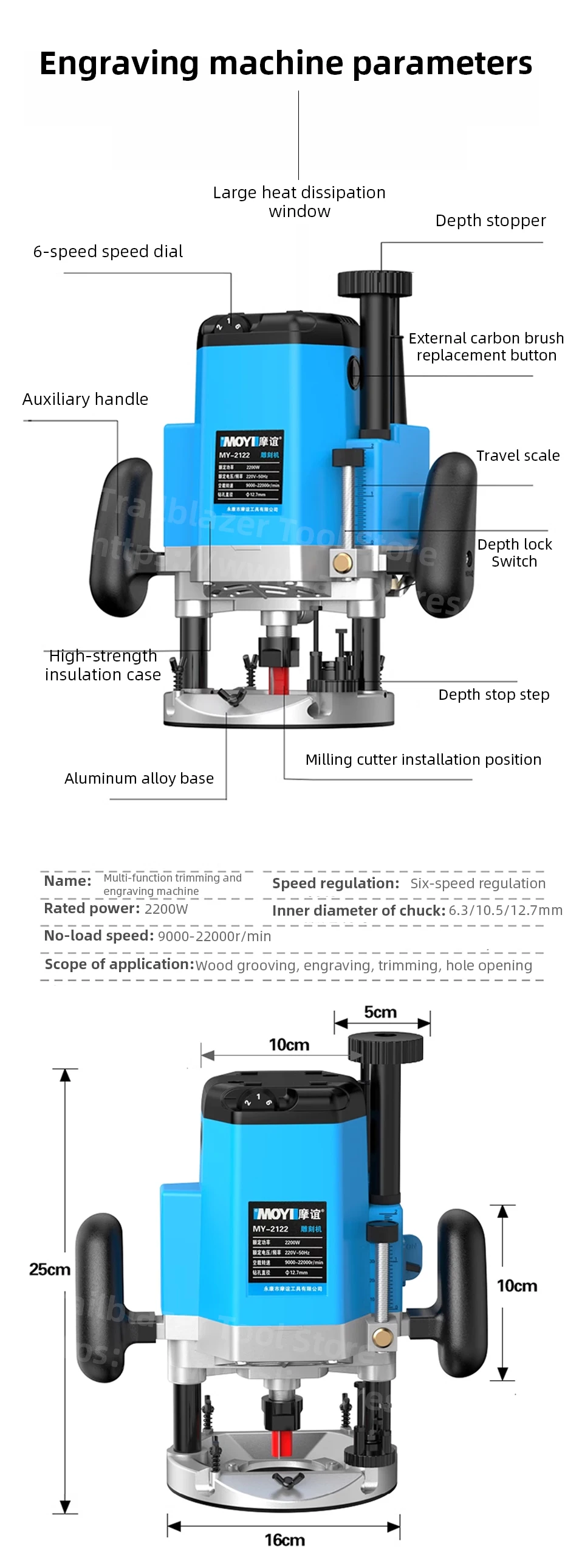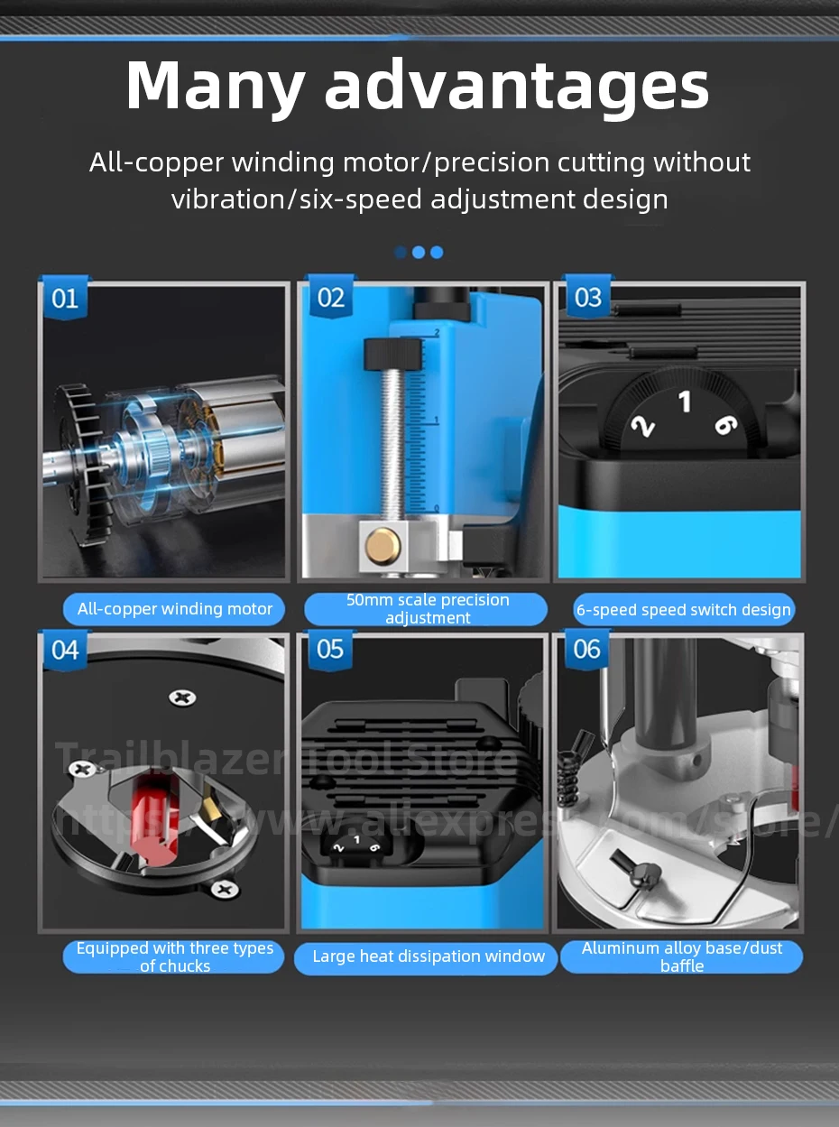 2200W Electric Router Trimmer Power Tool Wood Milling Engraving Slotting Trimming Tenoning Drilling Wood Milling Machine