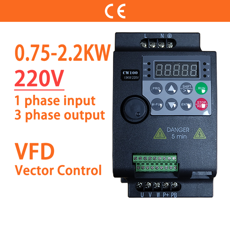 220V 0.75KW/1.5KW/2.2KW 1HP/2HP/3HP Economical Mini VFD Variable Frequency Drive Converter for Motor Speed Control Inverter