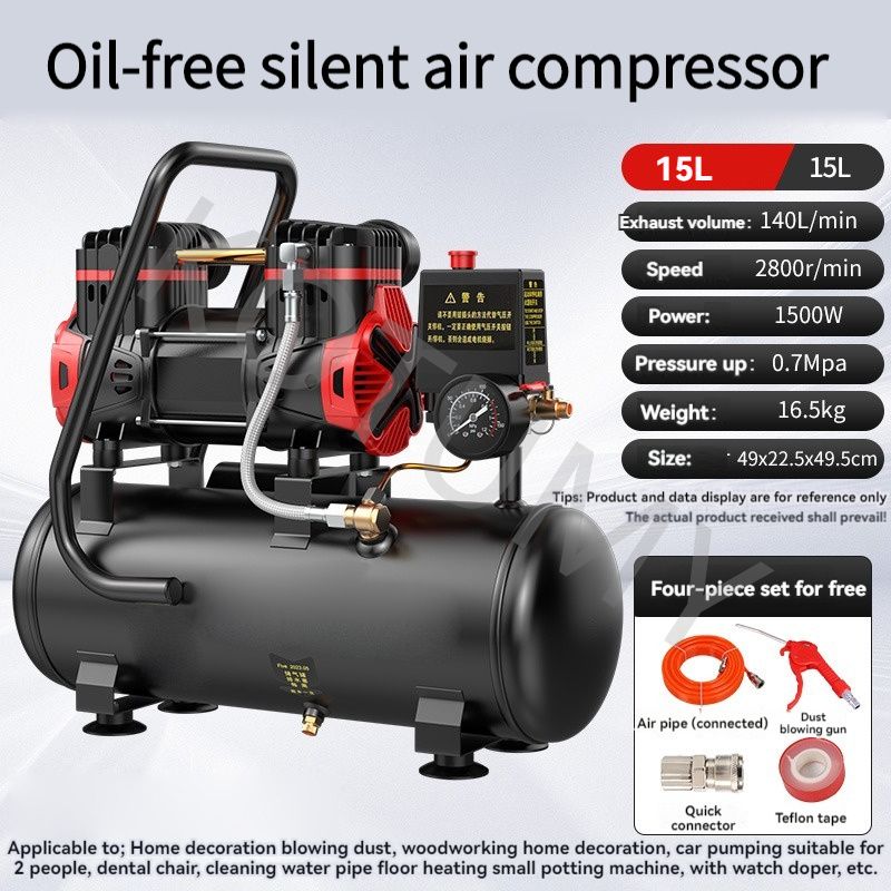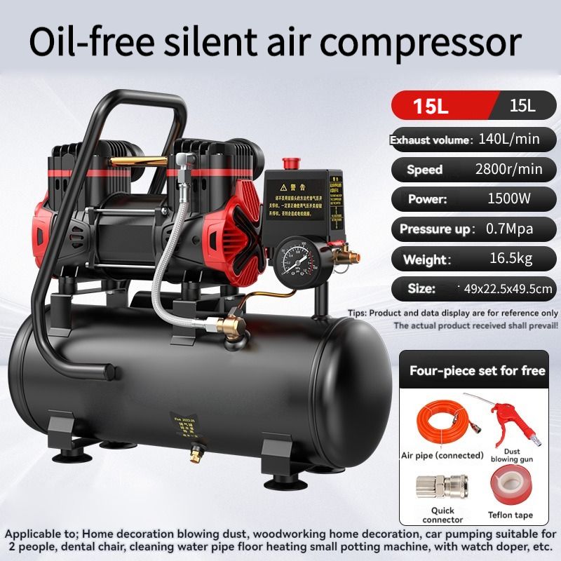 220V 10/15L/30L Silent Air Compressor 1100W 1500W Quiet Oil-Free Portable Air Pump For Home Repair Tire Inflation Compressor