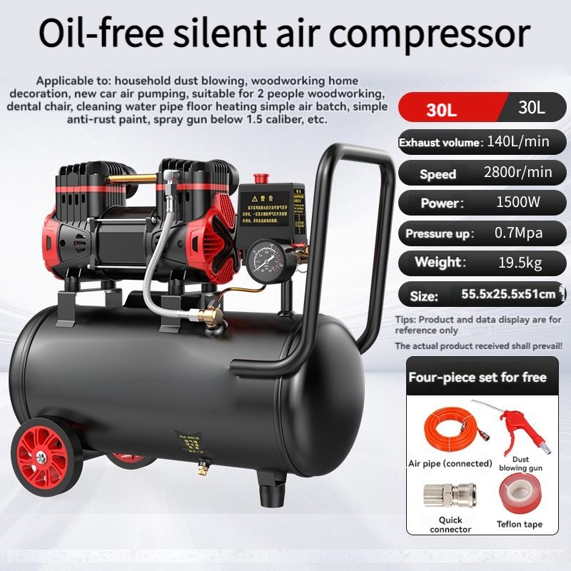220V 10/15L/30L Silent Air Compressor 1100W 1500W Quiet Oil-Free Portable Air Pump For Home Repair Tire Inflation Compressor