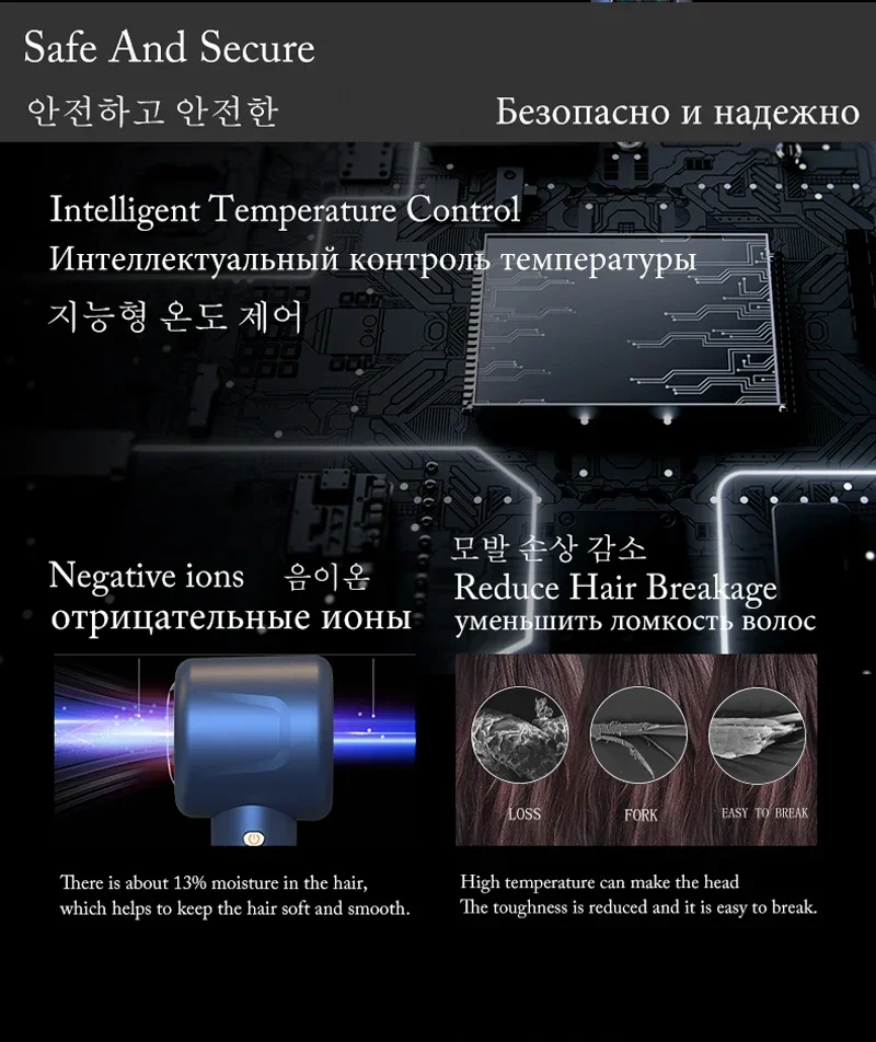 1.Negative Ion Function: The anion generator of the hair blow dryer produces millions of negative ions to protect your scalp from heat damage,smooth hair.