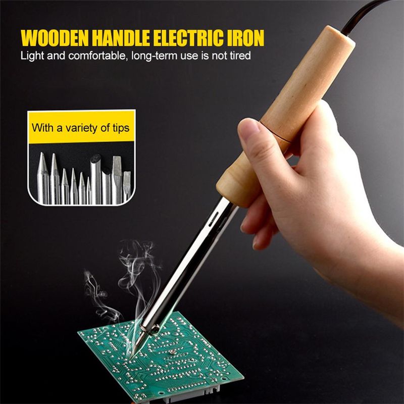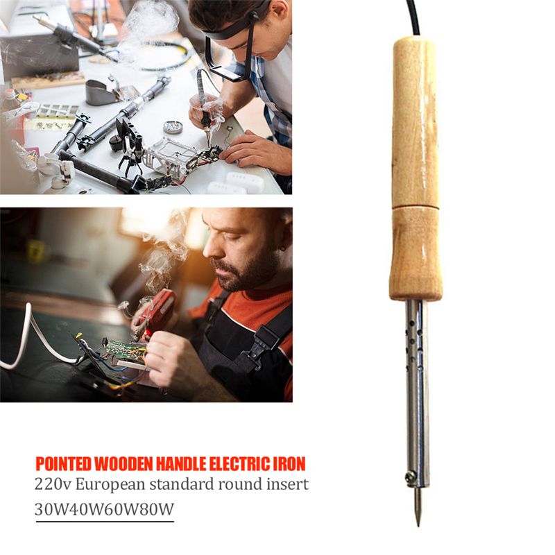 220V Adjustable Temperature Electric Solder Iron 30W/40W/60W/80W/100W Wood Handle Mini Soldering Iron Rework Station EU Plug