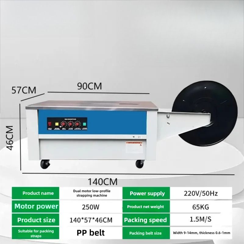 The 220V fully automatic strapping machine is an industrial-grade packaging equipment integrating sealing, strapping, and tightening functions, designed specifically for modern warehousing, logistics, and e-commerce companies. It adopts one-button efficient operation, achieving a fully automatic cycle from tape feeding, tightening, heat sealing, and cutting, significantly improving packaging efficiency and standardization.
