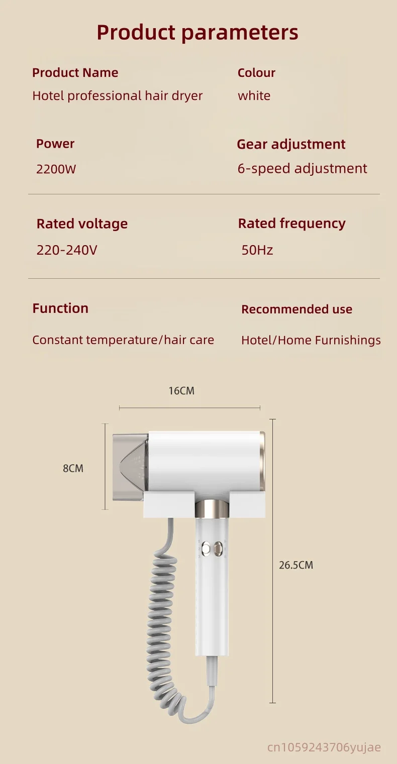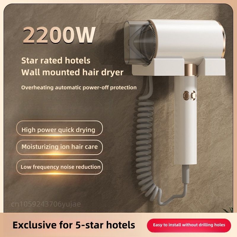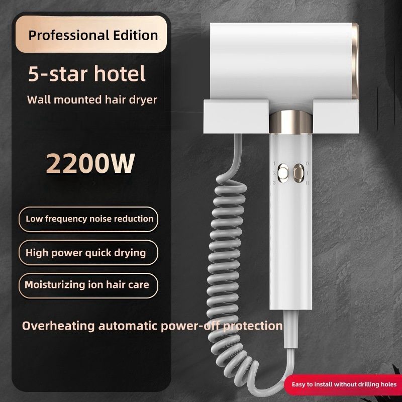 220V Hotel Specific Hair Dryer 2200W High-Power Fast Drying Silent Wall Mounted Household Hair Dryer Without Punching Holes