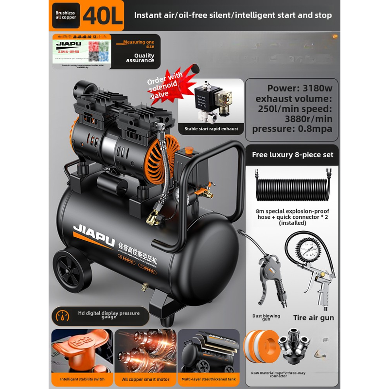 220V Industrial Grade Air Compressor Pump Mini Silent Oil-Free Air Pump for Car Tire Inflation