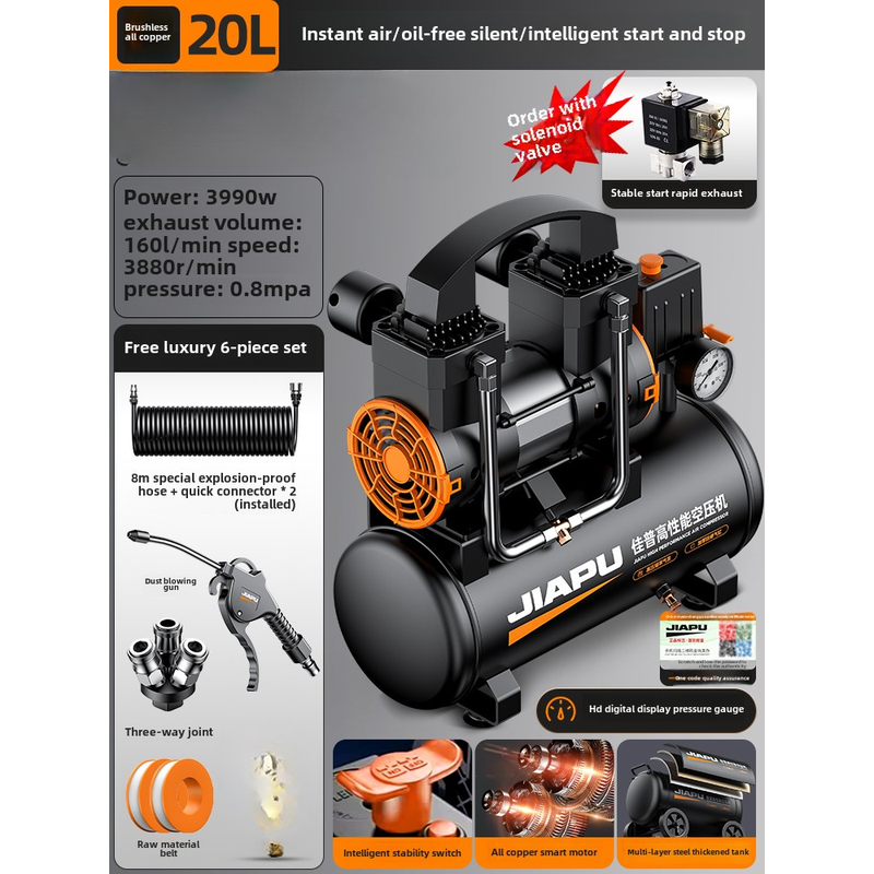 220V Industrial Grade Air Compressor Pump Mini Silent Oil-Free Air Pump for Car Tire Inflation