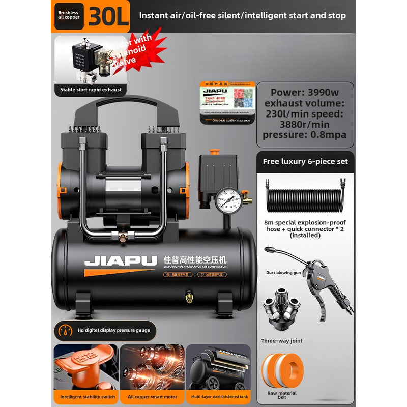 220V Industrial Grade Air Compressor Pump Mini Silent Oil-Free Air Pump for Car Tire Inflation