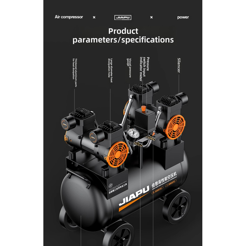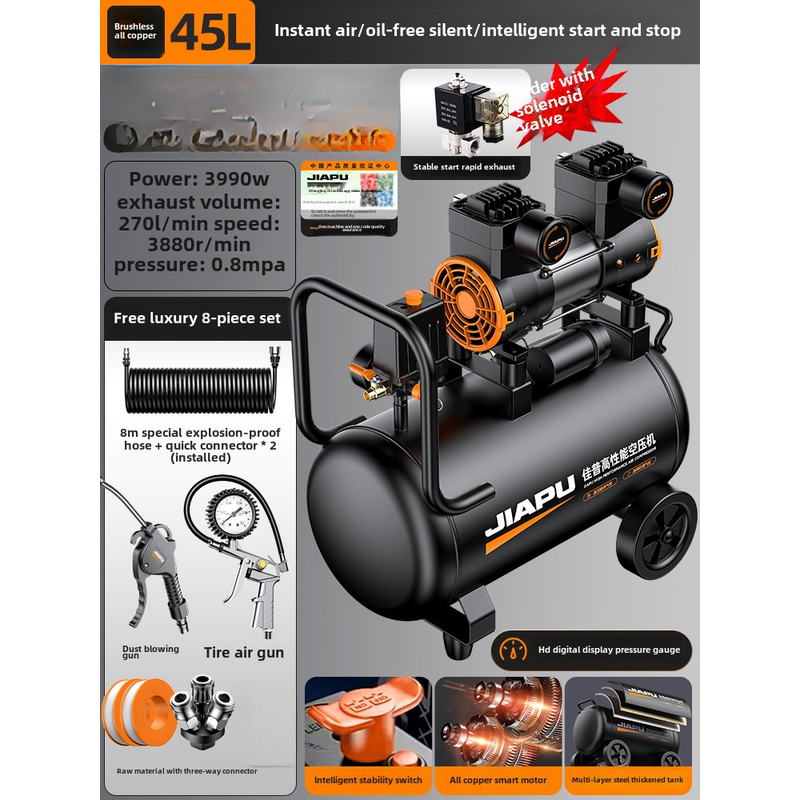 220V Industrial Grade Air Compressor Pump Mini Silent Oil-Free Air Pump for Car Tire Inflation