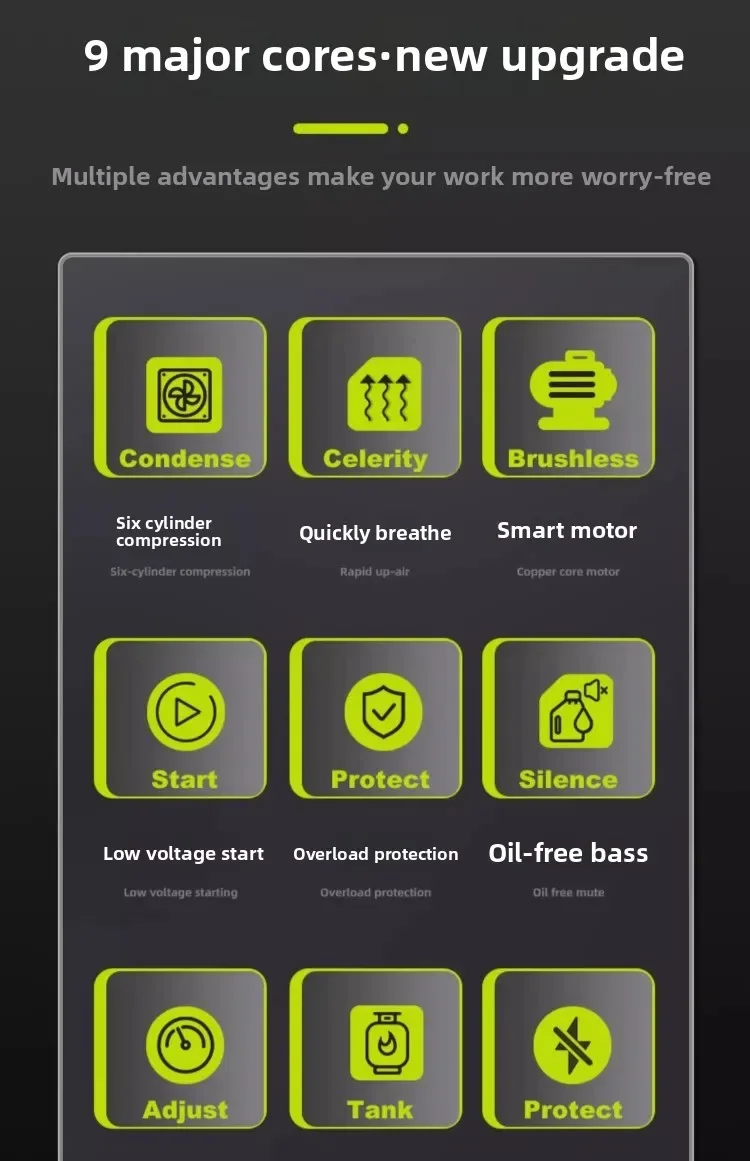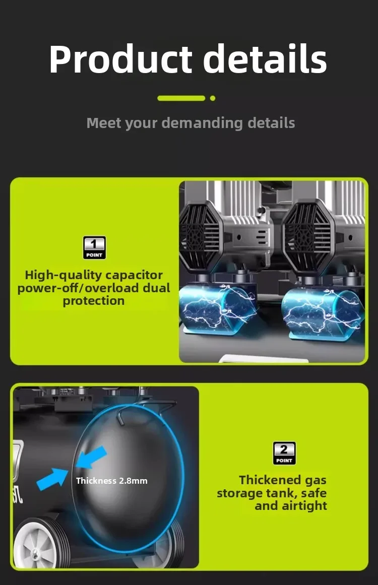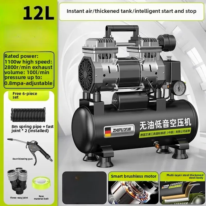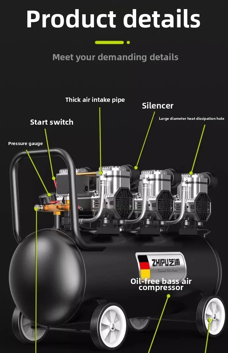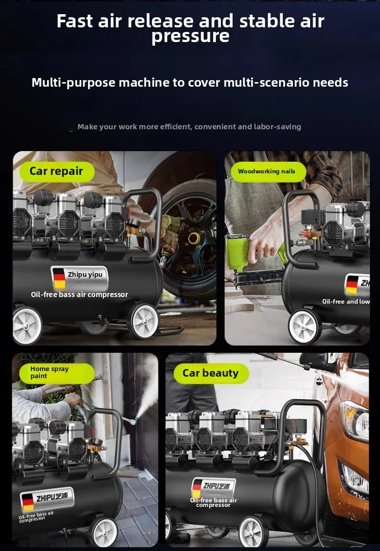 220V Industrial Grade Silent Oil-Free Air Compressor 220V Mini Portable Woodworking High Pressure Inflator Pump