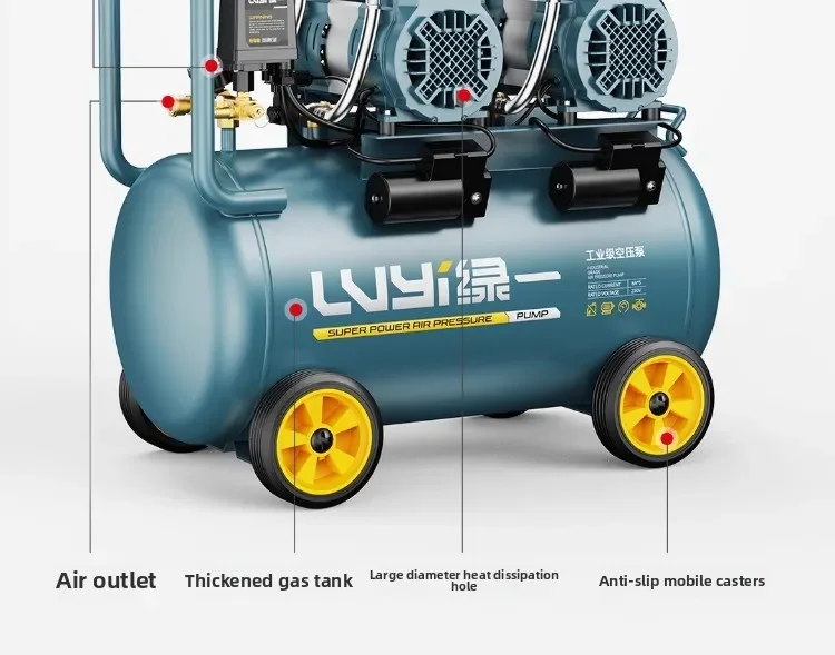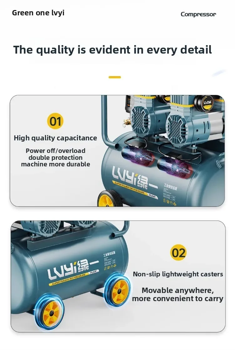 220V Industrial Oil-Free Silent Air Compressor Portable Woodworking High Pressure Inflator Pump