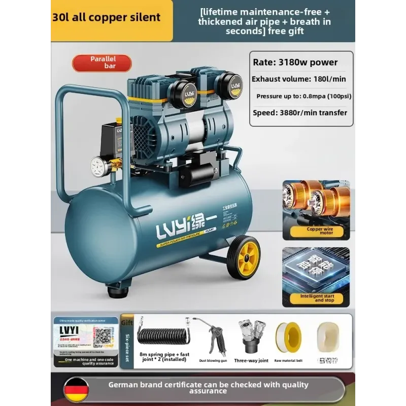 220V Industrial Oil-Free Silent Air Compressor Portable Woodworking High Pressure Inflator Pump