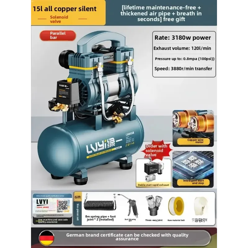 220V Industrial Oil-Free Silent Air Compressor Portable Woodworking High Pressure Inflator Pump