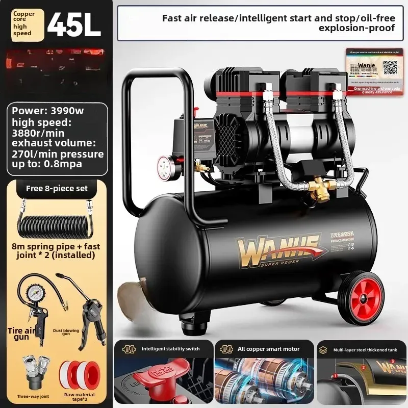220V Portable Industrial Grade Woodworking Silent High Pressure Air Compressor Pump Air Compressors
